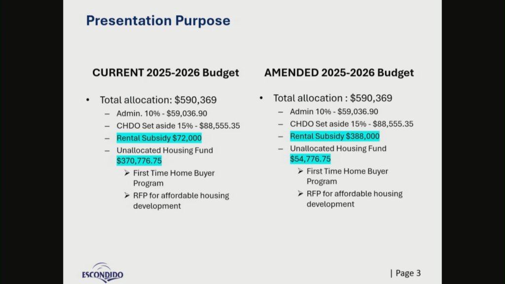 Separately, city staff warned that Escondido must spend $583,938 in HOME funds by Sept. 30 or risk returning the money to HUD.